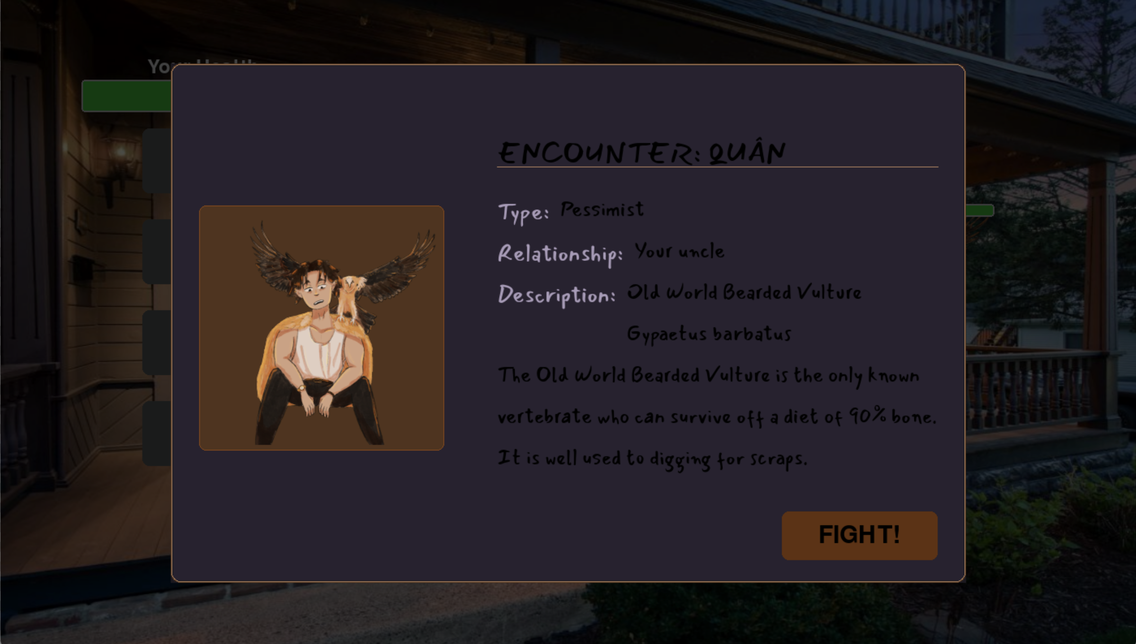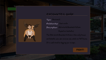 Kin Selection is a story told through a turn-based Pokémon-style battle system.